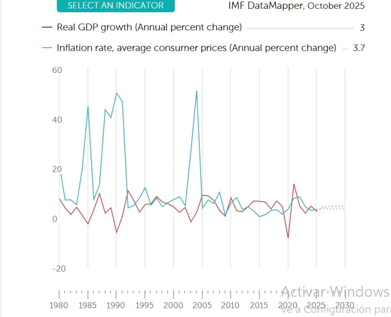 El crecimiento de República Dominicana sigue proyectado por el Fondo Monetario Internacional (FMI) en un 3% del producto interno bruto (PIB). En su portal, el FMI estima que el país mantendrá también un control sobre la inflación y proyecta un 3.7% para el cierre de este año 2025. Ayer, el FMI presentó el informe sobre las Perspectivas Económicas mundiales 2025, como parte de las Reuniones Anuales que realiza en conjunto con el Banco Mundial, en Washington, Estados Unidos, pronosticando unas perspectivas “sombrías” de crecimiento, debido a que el entorno global sigue siendo volátil. Sugiere a los países aplicar sin demoras las reformas estructurales. En el caso de Ecuador, se registrará un 3.2%, Bolivia un 0.6%, Uruguay un 2.5%, Paraguay un 4.4% y Venezuela un 0.5%, según reporta AFP. El Departamento del Hemisferio Occidental ofrecerá detalles concretos sobre la región. Regional En su gráfico sobre el comportamiento de la economía mundial, el FMI también estima que la región de América Latina y el Caribe mantendrá el mismo crecimiento de 2.4% en 2025 que en 2024 y baja sus proyecciones a 1.9% para el 2026. La economía mundial baja de 3.3% en 2024 a 3.2% en 2025 y 3.1% en 2026. En la rueda de prensa de ayer encabezada por Pierre Gourinchas, el economista precisó que la economía estadounidense no vislumbra riesgo de recesión, pero sí una desaceleración significativa de 1.8% para este año 2025, que es una baja de 0.9%. Precisó que este debilitamiento inició antes de la aplicación de aranceles en Estados Unidos. Explicó que los aranceles han impactado en de 0.4 puntos porcentuales y también han significado una pérdida de impulso, una reducción del consumo y de la confianza de los consumidores. Con relación a la zona Euro, el FMI proyecta que el crecimiento de 0.9% en 2024 se colocará en 1.2% en 2025 y 2.1% en 2026. La economías emergentes pasan de 4.3% en 2024 a 4.2% en 2025 y 4% en 2026. Dentro de estas también pronostica un menor crecimiento para China, que pasa de 5% en 2024 a 4.8% en 2025 a 4.2% en 2026.